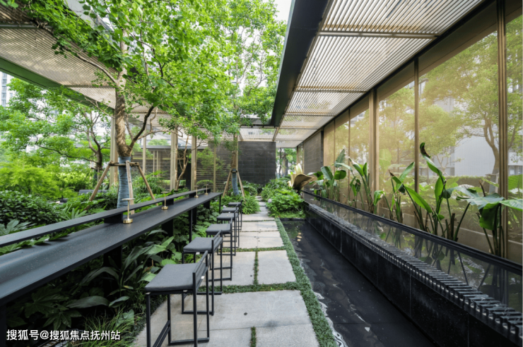 正对草坪处设计水帘,水声潺潺,过滤草坪喧闹,那些“女生们的悄悄话”,也不会被听到。