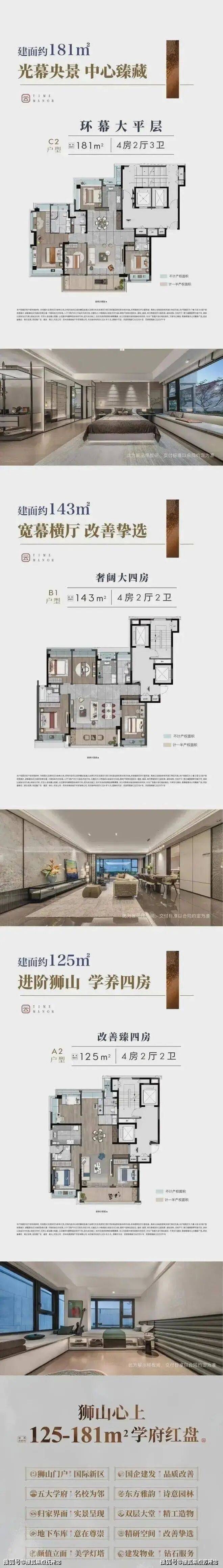 ◆建筑面积:约125㎡3房2厅2卫及4房2厅2卫、约143㎡4房2厅2卫、约180㎡3+1房2厅3卫