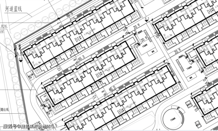 局部截几张,从建筑高度来看,3F,H=11.8米,应该是联排产品了。