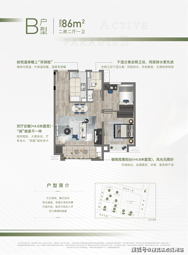 保温科技体系:按照绿建三星的标准,项目外墙主体结构采用内外双保温,墙体内保温+外保温涂膜,保温性能更好,室内居住更加舒适。