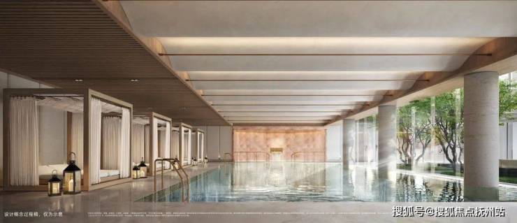 尤其是光廊设计引入室外阳光,泳池游泳也能享受阳光温暖,进一步将尊贵体验感拉满。