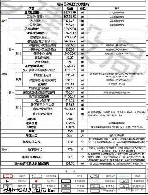 项目总用地面积约1.18万方,总建筑面积约3.29万方,计容建筑面积约2.35万方,住宅建筑面积约2.09万方,容积率2.0,户数159户,机动车停车位170个,车位配比1∶1.07,户均建筑面积约131.2平。