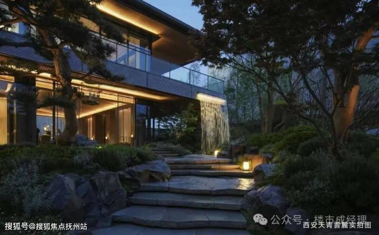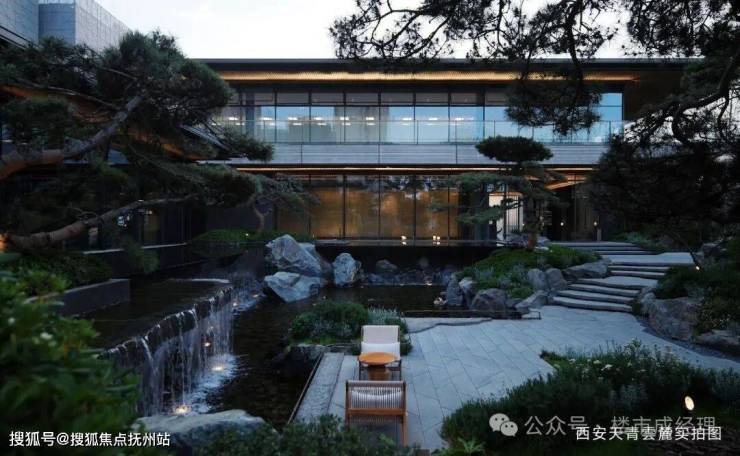 油松迎宾、寻涧锦鲤、琉璃光院、伴山庭院、叠水流瀑,层层递进的归家之仪,重塑世家优雅品味。