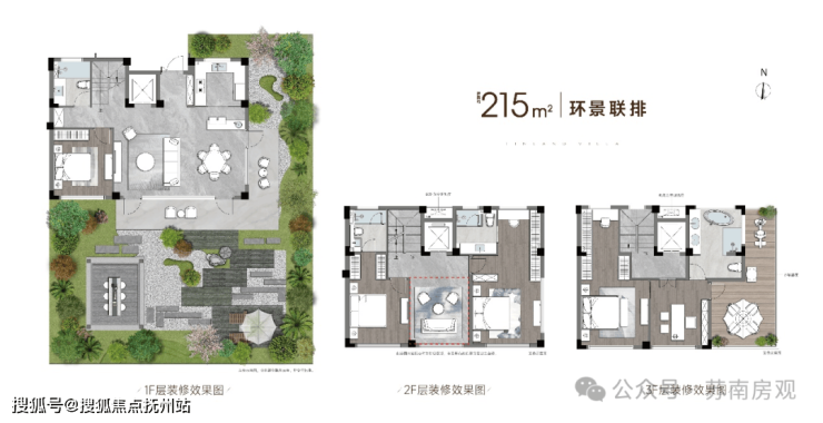 建面约215㎡的联排产品,以“大面宽、短进深、全套房、多庭院”的设计,迭代苏州墅居体验。南向面宽做到约10.7米,实现三面宽朝南与全套房设计,彻底告别传统别墅的幽暗与闭塞。围合庭院+约4.8米挑高地下室+星空露台,它不是别墅空间的简单组合,而是对家庭社交、成长、休憩等全场景营造。