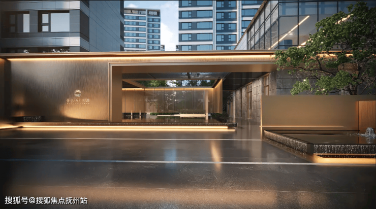以社区入口为例,参照星级酒店标准,打造高约6米、宽约30米的奢阔门头,辨识度、仪式感、品质感兼具。