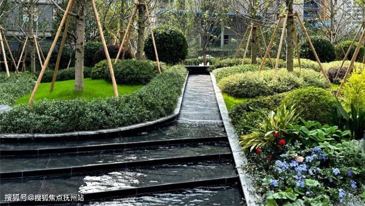 中海·江湾樾依托约4.1万方宽绰景观面,规划3大中庭景观空间。以江、水为介的景观叙事展开与人居的自然交流,引江入园、循水而归,设置「一轴/三园/五境/N花园」景观体验,打造全维度、多功能、沉浸式的江岸生活场景。