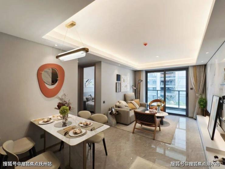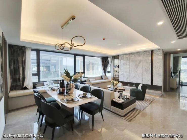 餐客一体的大横厅,配上一个约6米的超大飘窗,不仅空间大气通透,还能借景入室,是近年来深受年轻人喜爱的布局。