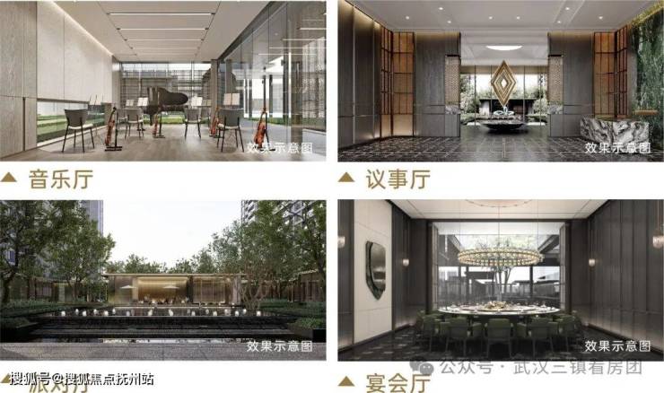 本案凭借超前理念,将酒店式社交场景融入社区配套,把“私域会所体验”融入主题架空层。三馆四厅”的超配主题空间,构建更有温度的“菁英社区”,为城市菁英圈层营造豪宅式生活场景。