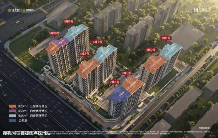 从社区排布来看,四栋楼整体南低北高,每家每户都能享受到阳光,采光和视野都是上乘。