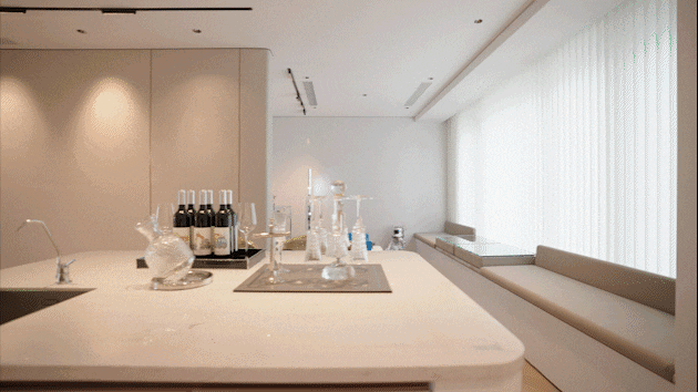 另外,与205㎡的户型一样,整个室内同样充斥着圆弧的设计,包括圆弧形设计的岛台、客厅吊顶圆弧设计,客厅转角、公区圆弧设计等等。