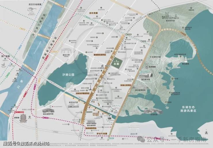 医疗上,项目与三甲医院武汉大学中南医院直线距离约1.4公里,地铁1站路,非常近。