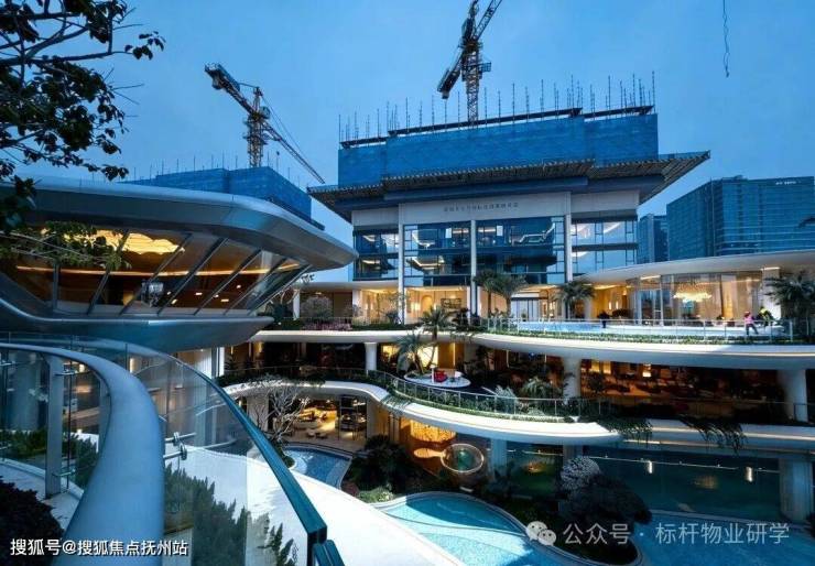 16米高的三层立体水院景观,与飞碟型景观会客厅、瀑布水系及恒温泳池交相辉映。超2500平方米的景观水系贯穿全域,撷取海岛、森林、度假花园等元素,营造出顶奢度假酒店般的沉浸式归家体验。全球臻选苍翠古树,搭配南法、地中海砂生植物,打造层次交织、移步异景的风景,下楼即是一场旅行。