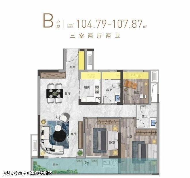 120平内做南北双阳台,独立玄关入户,北向次卧送了不少面积。