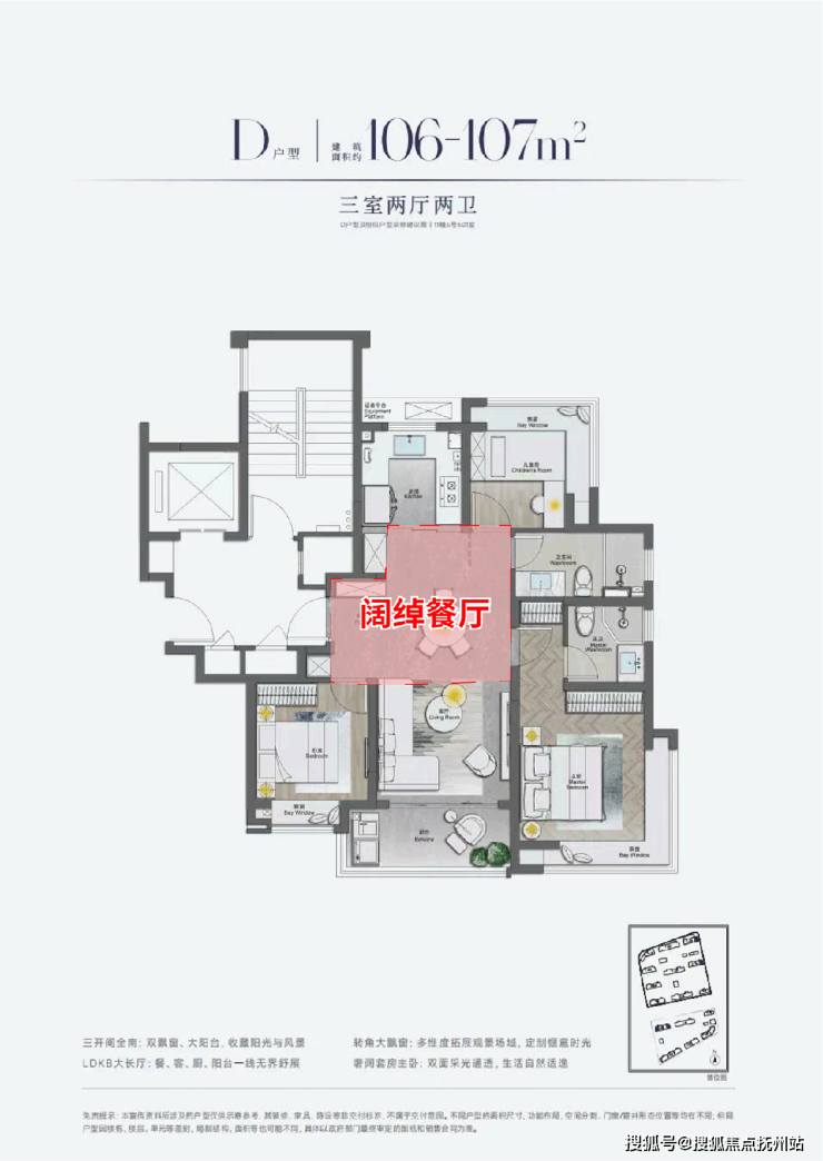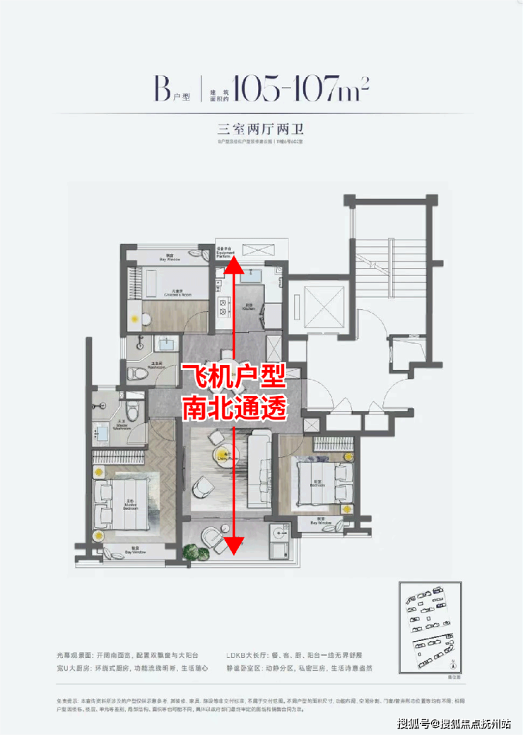 建筑面积约105平方米的景观楼王户型,几乎可称得上是完美无瑕的优选户型。该户型具备三面朝南、南北通透以及宽敞餐厅的设计基础,同时实现了主卧室与北侧次卧室的L型大飘窗配置,提供了270度的采光和开阔视野。通常,L型飘窗设计仅见于豪宅的大平层主卧之中,而今在西派海上百平方米的户型中得以实现,并且一户之内便设有两间卧室。对于主卧而言,躺在床上即可享受窗外景观;对于北向次卧,L型飘窗则有助于扩展空间感。此类户型在市场上极为罕见,预示着其在未来二手房市场中可能具备独立的定价权。