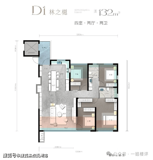 建面约126平四房两厅两卫:该户型是城投红树林全新推出的四房。