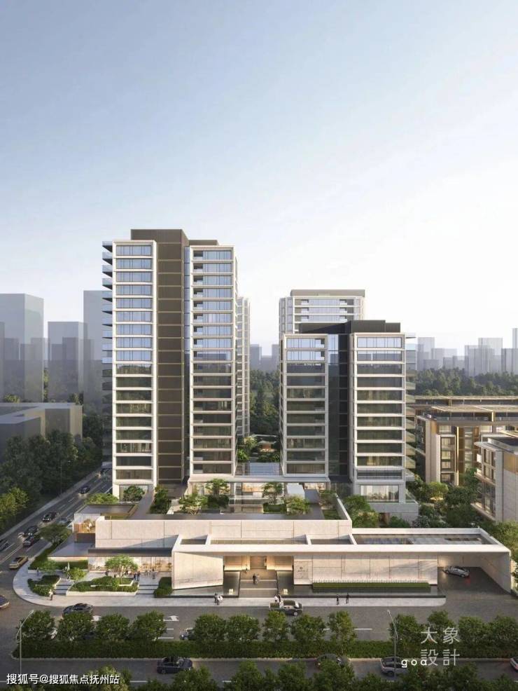 高层建筑采用现代格构体系设计,通过仿石铝板与玻璃的虚实搭配,选用高级灰与大地色系,质感沉稳内敛。叠墅延续蒙德里安格构手法,强化竖向构图与独户体验,设置层层退台及进深2.4-3米进深露台,拓展生活场景,也可打造屋顶花园。