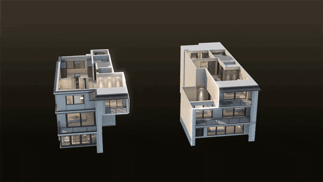 以钱湖静水流深的韵律,创新嵌合式上下叠结构,在纵向的尺度里,打造独属每个家庭成员的个人空间。在抛开一切奢侈的装饰之后,依然呈现建筑最本真的空间属性,以无限细分的空间尺度,丰满生活的可能性,同时通过阳光平权,风景平权的通透与留白,营造象外之象,言外之意的唯美意境。