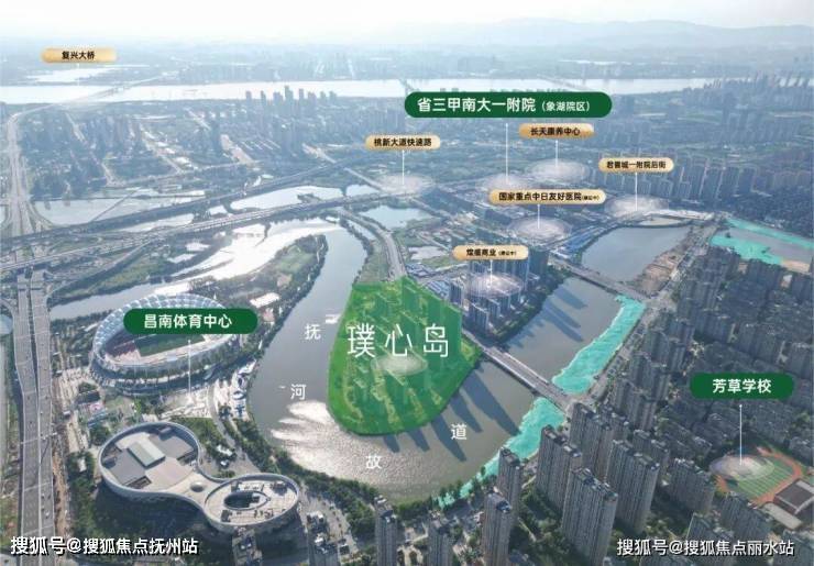 “南昌向南”的城市空间发展导向推动象湖板块腾飞,璞心岛正位于新老象湖交汇处,传统片区和滨江片区两大板块在此碰撞出火花,发展辐射整片区域,身处象湖城芯腹地,既可享受老城区的醇熟配套资源,又能承接滨江片区的发展势能。