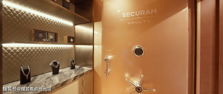 隐藏移门后面,是防弹金库门,除了日常的珍品收藏外,是杭州真正意义能够紧急避难的安全屋,因为有独立供氧、防烟防毒、卫星通话,耐火极限2小时,能够在灾难来临的时候最大程度保护家人的生命安全。