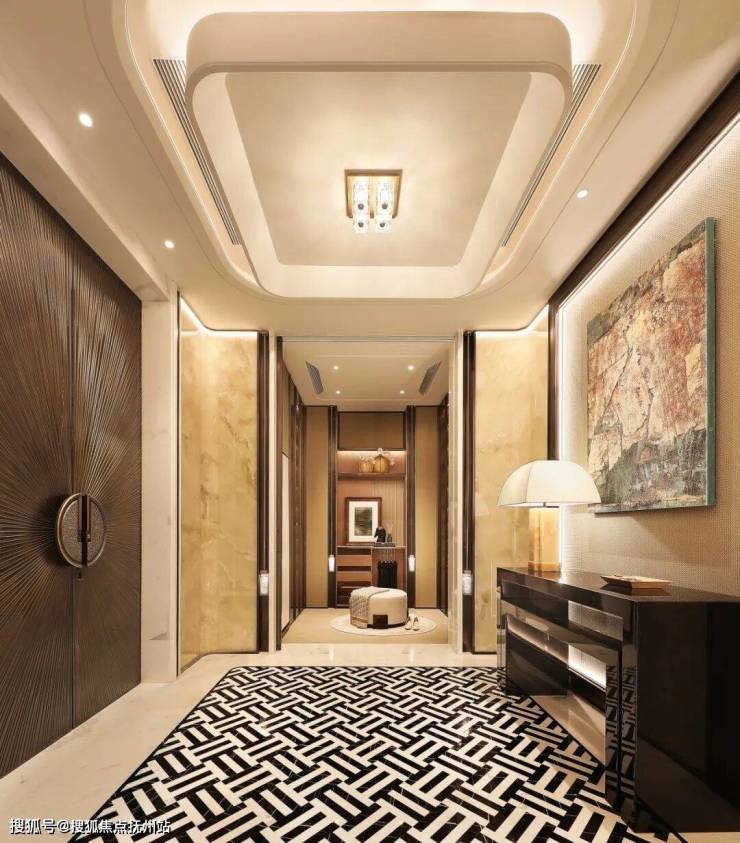 从盗梦空间来到少年派奇幻漂流中的发光海洋,弹着钢琴,看热带鱼群在珊瑚礁中穿行游弋,营造的是另一种梦境。整面深海鱼缸造价100万,因为70吨实在太重,限定8户,先到先得。这是双开装甲门进来的过厅,中央一台钢琴,左边是深海鱼缸,右边是鱼肚白拼接出的极富立体感的大鹏展翅,寓意着海纳百川、鹏程万里。
