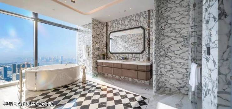 总统套房,超过(建面约)75㎡,主卫是大花白满铺,劳芬按摩浴缸,当代水晶龙头,双淋浴间的小情趣,偶尔一起洗澡,还带着湿蒸功能。