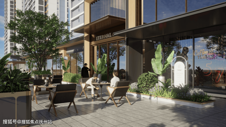 区别于传统社区底商,半开放式慢街区设计,通过商铺与人行道的退让,留出更多空间给阳光和绿植,打造有呼吸感的治愈空间,并在街区设置街角广场和口袋公园,再加上开放、便捷、有活力的商业形态,延长客群停留时间,增加消费机率。