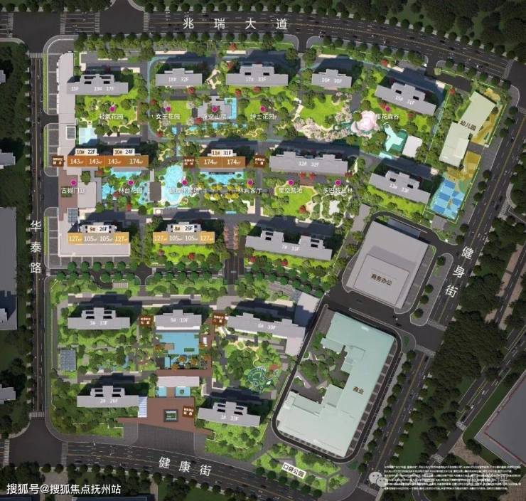 项目主要由15-33层不等的小高层和高层组成。在这里,没有高容高密的压抑,也没有超高层住宅之间的互相遮挡,对于不喜欢超高层住宅的人群来说非常友好。