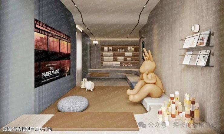 3号楼东侧「拾光书房」:划分7个独立单元,可用于亲子阅读、手工课堂、周末剧场、课后学习等。南向设有折叠玻璃窗,可将室外景观引入室内。
