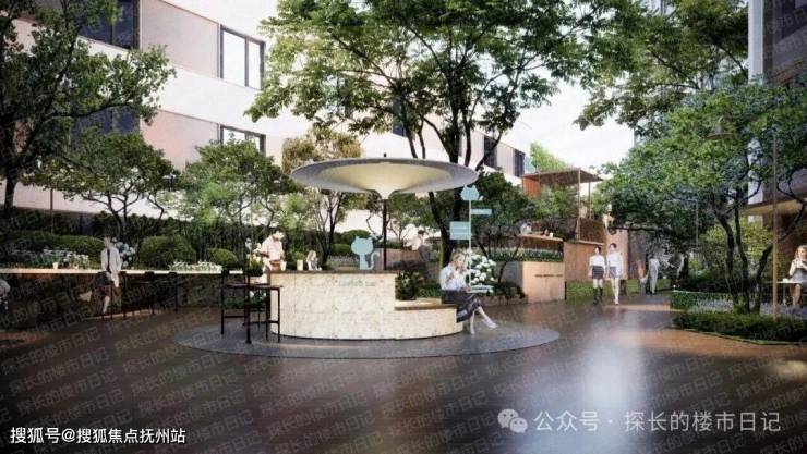 3号楼南侧利用台地高差设置立体花园,配有吧台与座椅,是社交的不二之选。