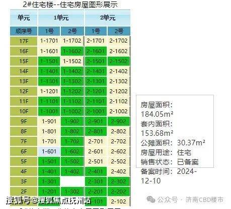 2号楼:17层(两梯两户),185平,公摊16.5%