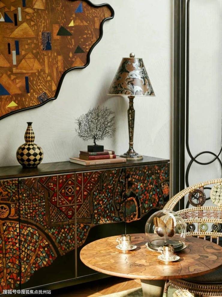 主卧床Kalì Nikta(希腊语中的“晚安”)、“Night Tales”系列床头板均来自意大利奢侈品牌Promemoria,其生产的每一件家具都融入现代技术与手工定制意大利工艺,凭借超越自身价值的典藏意义及文化艺术价值被誉为“明日古董”,酒柜为意大利顶级品牌Fendi Casa的绝版典藏款。
