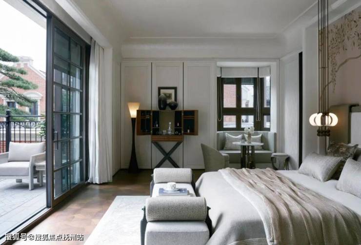 拉开主卧的双开门式深色木框门窗,任清风入室,吹得窗纱浮动,面朝婆娑起舞的树影醒来,枕着从露台撒入的月色入眠,如白居易笔下的“偶得幽闲境,遂忘尘俗心”,空间意义早已超越了物理的休憩场所,而成为精神栖息之地。