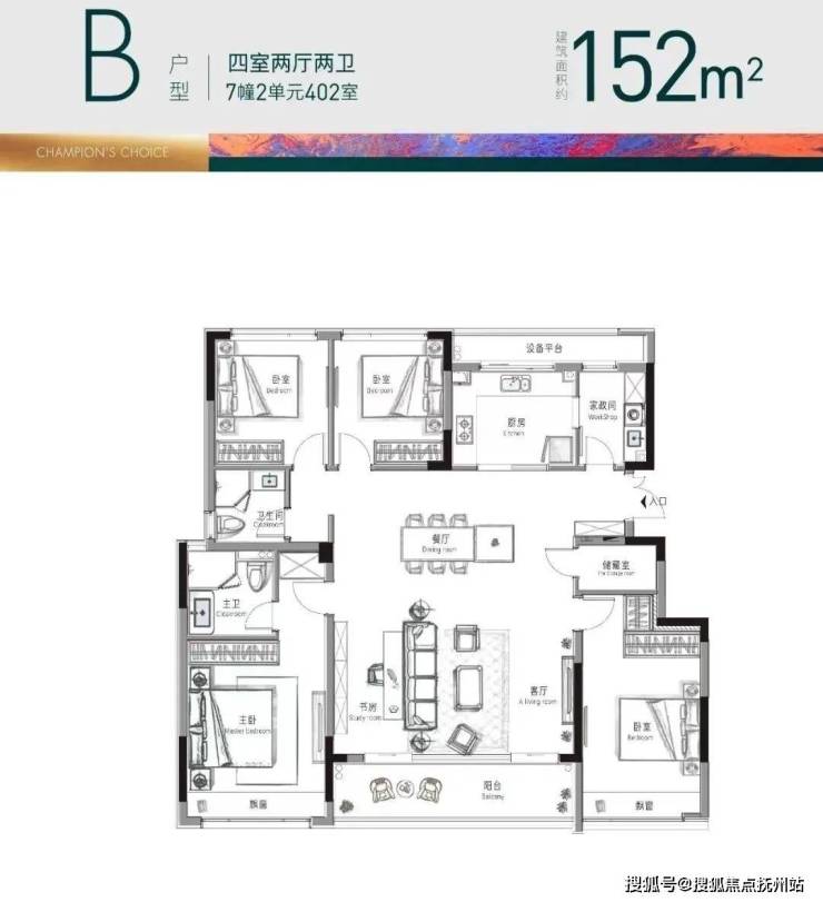 客厅设计一个西厨岛台,餐厅摆一张大圆桌,宽景阳台置上茶桌藤椅,随时都能来一场衣香鬓影的大派对。
