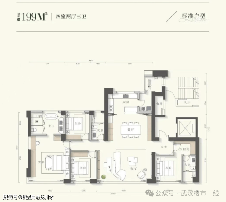 相较于T3号楼的建面约198平,T1号楼建面约199平又做了很多升级: