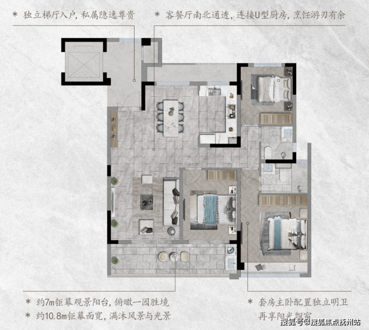 更有总统双套房设计,立体式地向嘉兴重新诠释了改善阔居的标准。这一席建面约179㎡,不仅代表着物理层面上的舒适感,还代表着居者精神层面上的宽境气魄。