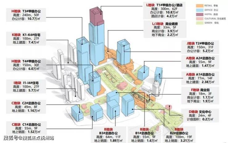 共包含46万㎡超高层地标办公楼、17万㎡(其中9万㎡地下)商业、12.6万㎡住宅、4.2万㎡超五星酒店、18万㎡的金融不夜城ParkMall,以及5万㎡公共绿化。不同区域和各区域定位功能共同构成了外滩区域最鼎级的集购物、娱乐、休闲一体化的超级城市综合体。