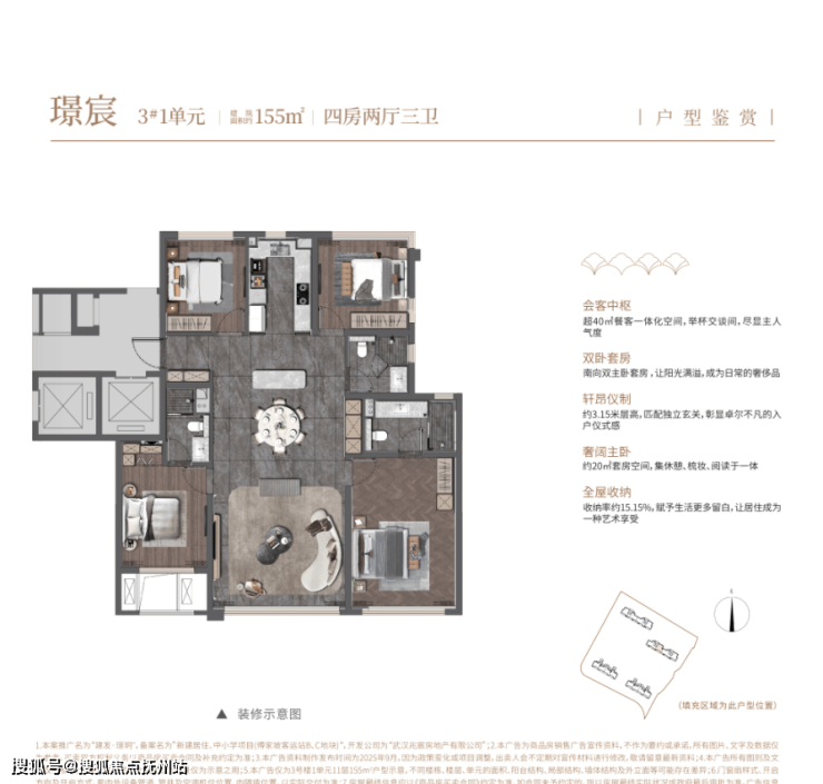 全户型电梯入户,3.15 米层高重新定义空间尺度;以约 100% 超高得房率,匹配国际高端精装标准,开创内环准四代豪宅新纪元,树立空间价值天花板。