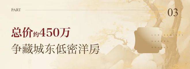 当钱二、奥体板块低密产品总价普遍超千万时,英冠·春棠雅韵府约166㎡奢定洋房总价约450万,让更多城市精英入主低密洋房成为可能。
