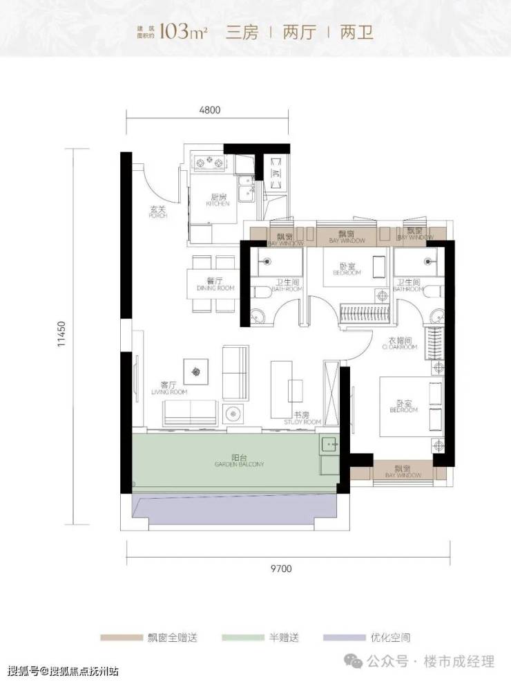 超90%得房率,大面宽主卧套房,南向联屏阳台