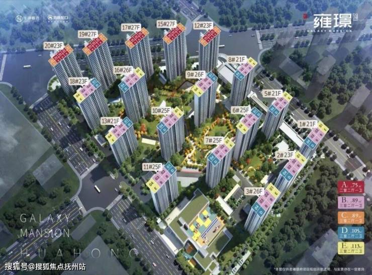 户型面积:75(2居)-89(3居)-105(3居)-113(3居) ㎡