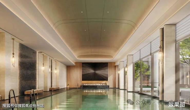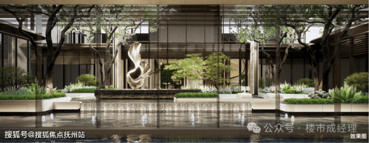 垂直滨水主题会所、下沉庭院空间,以度假酒店式生活场景,定制身心悠然的滨水奢境。