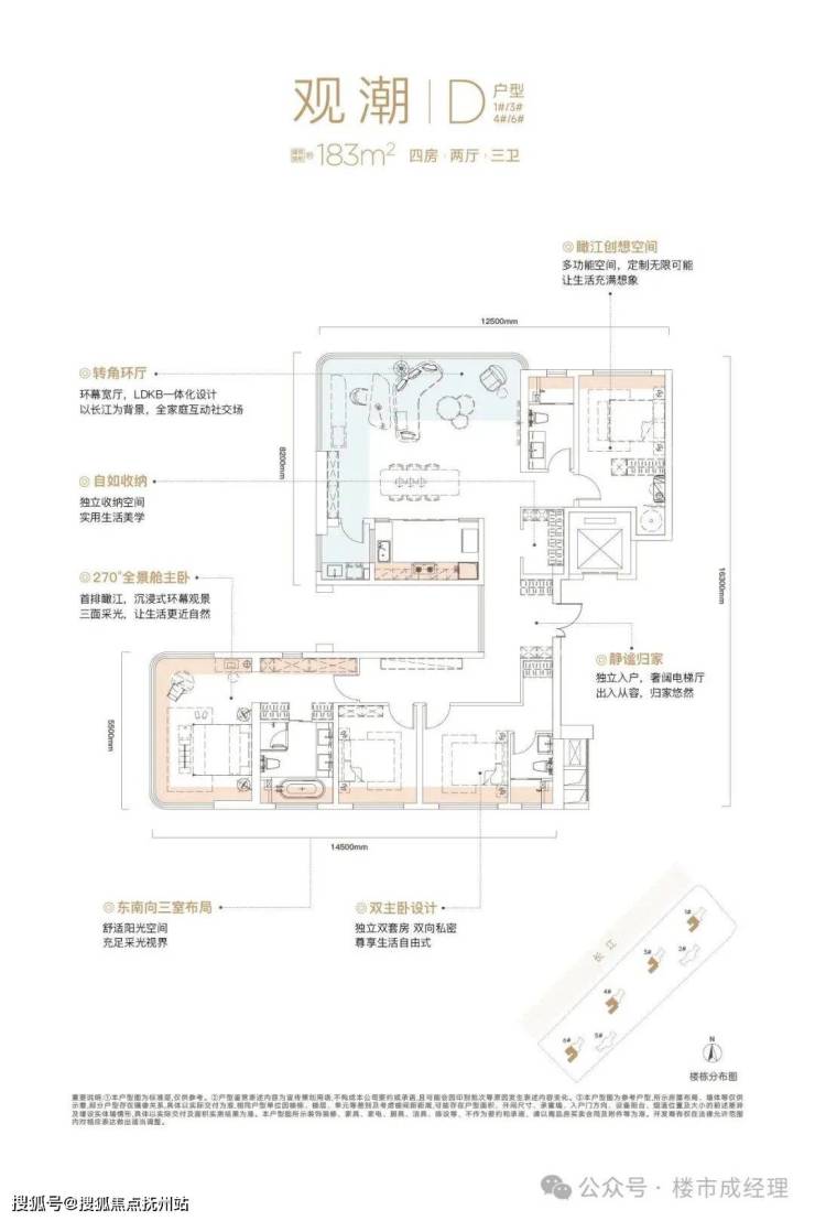 • 瞰江王座:IMAX级观江面,全楼栋V形折线形布局,户户正观江