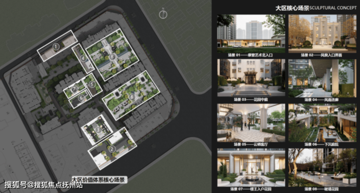 南北酒店式归家入口,南侧入口结合保留风貌建筑,风貌庭院式设计,给到满满的归家仪式感。