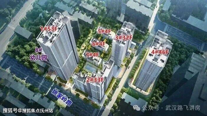 产权调换房分布在3、4号楼。3号楼包含两个单元,一单元32层(每层6户)、二单元27层(每层7户);4号楼同样为两个单元,一单元46层(每层11户)、二单元31层(每层3户)。需注意的是,4号楼为独立组团,与其他楼栋被规划道路分隔,此外项目内8号楼规划为幼儿园。