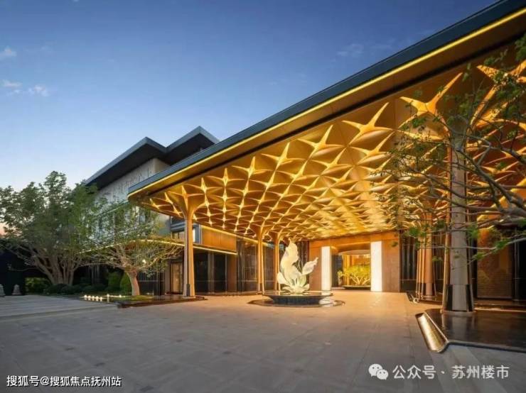 200多片百合花瓣组成的金色吊顶、精神堡垒的百合雕塑、宝格丽绿石材和金属格栅的景墙、福鼎黑花岗岩的地面铺装,构建的入户系统相比于传统流行以尺寸和材料展示气场的门头,绿城·沁百合更多展示的是品质之上的品味。