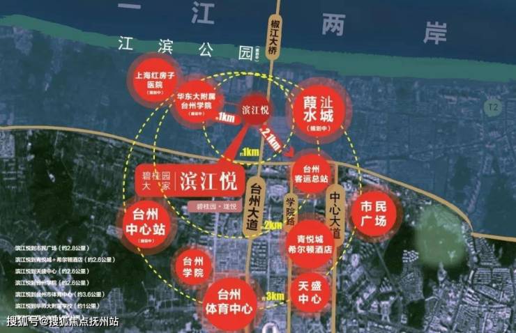 项目毗邻台州大环线和台州内环快速路,可快速通达椒江、黄岩、路桥三区。同时,距台州客运总站约500米,结合有轨电车T1(规划),将串联台州中心站(规划)、台州机场等主要交通枢纽,接驳长三角经济圈。