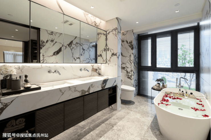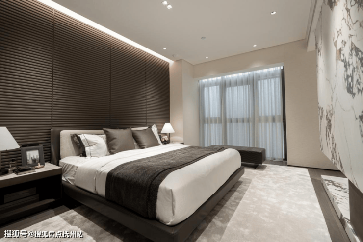 主卧套房的弗洛伦萨灰大理石地面,吞噬了最后一分贝城市噪音。