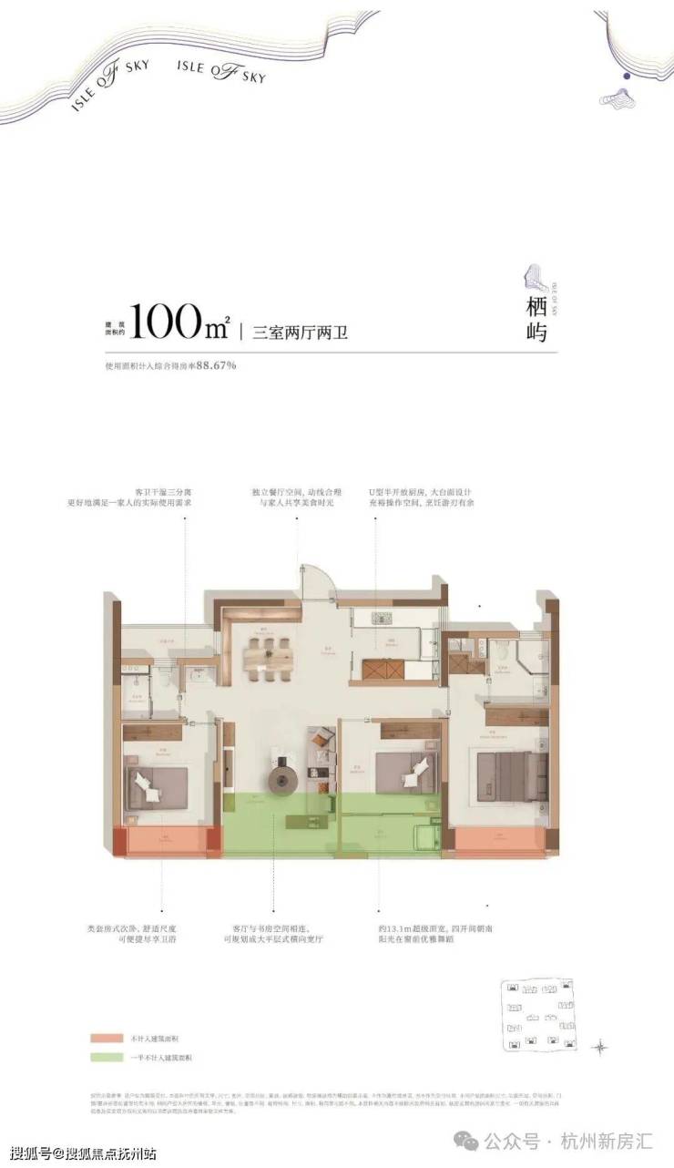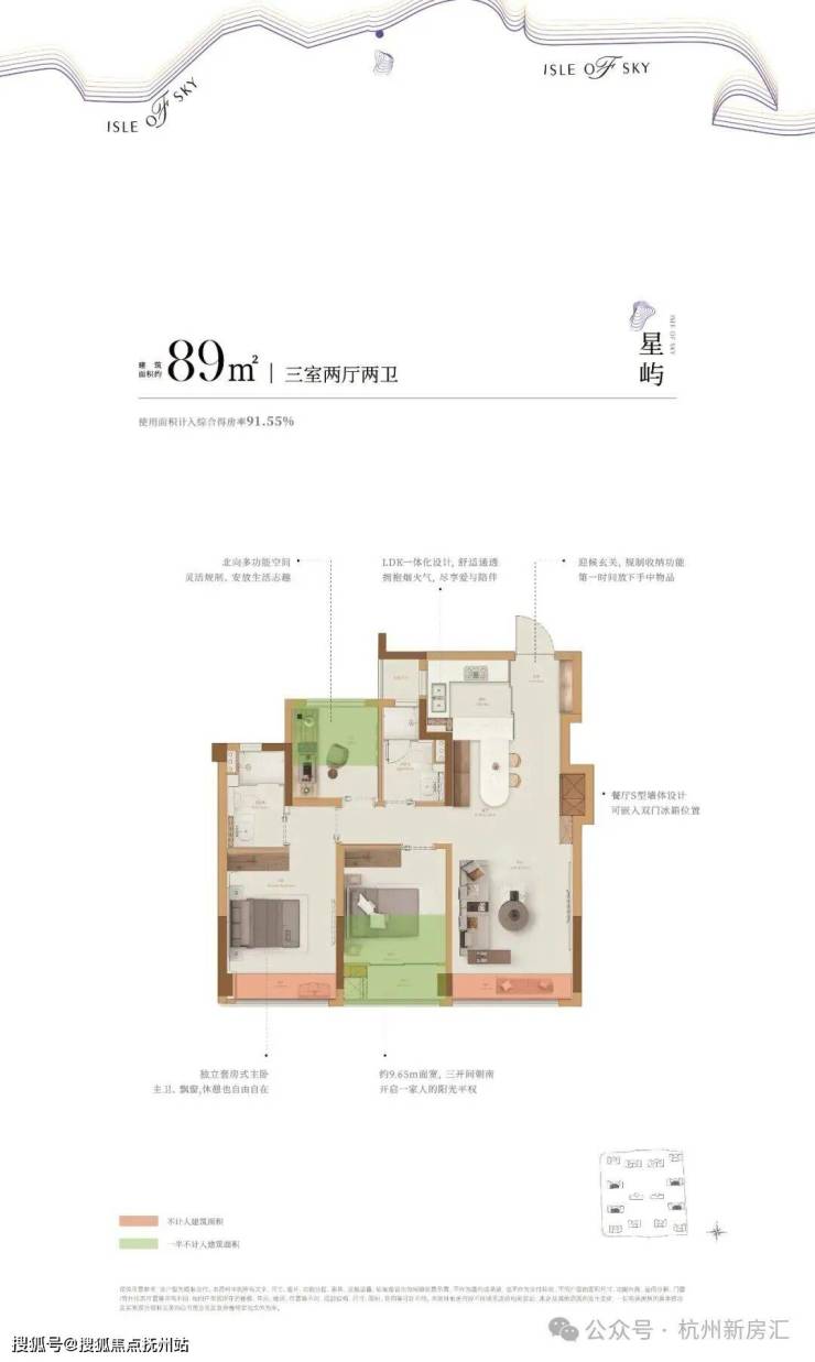 比如建面约89㎡是杭州时隔许久的小户型回归,得房率约91%,打造三开间朝南约9.65米大面宽、餐厅配有“S墙”可嵌入式双门冰箱,帮助年轻人轻松买房,住得更好。