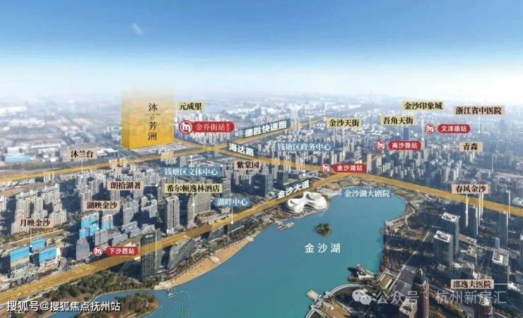沐芳洲位于杭州金沙湖CBD成熟的“黄金十字轴”中,背靠下沙最重要的千亿级产业中国·医药港小镇,聚集1800多家生物医药企业,周边四家五星级酒店、5A写字楼集群,形成宜业宜创的城市格局。