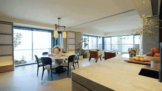“现在对好房子的定义,讲究的是一种综合能力的体现。我们现在所处的这套样板房是建面约240㎡四房户型。这个面积段被作为精华户型,在市场上其供应量相对稀少,面向的也是最懂产品、最看重生活品质的行家客户。”